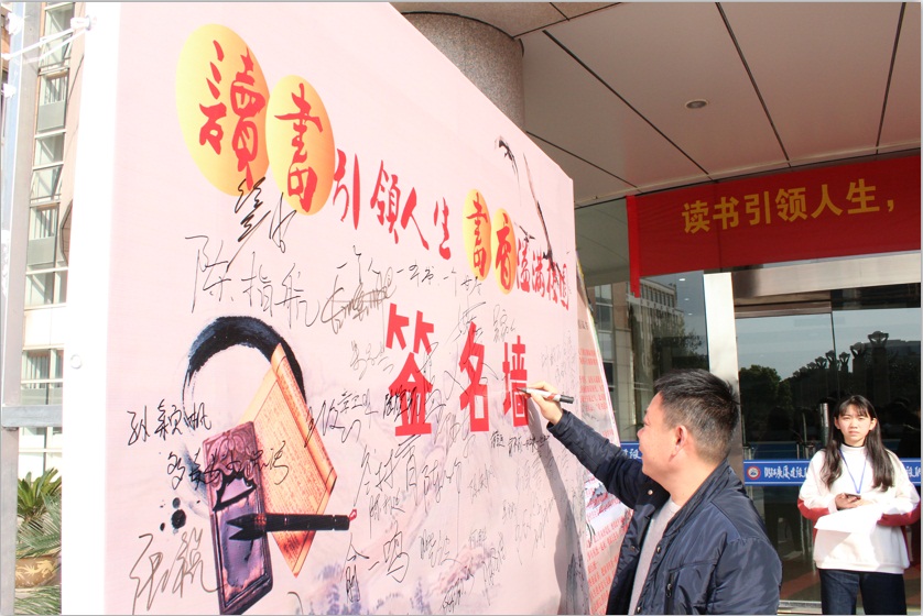 他说,学院图书馆藏书125万多册,为同学们提供了良好的读书习惯养成的平台,希望同学们能停止敲击键盘的手指,放下手中的手机,睁开朦胧的双眼,在书籍中阅读人生、阅读这个世界。